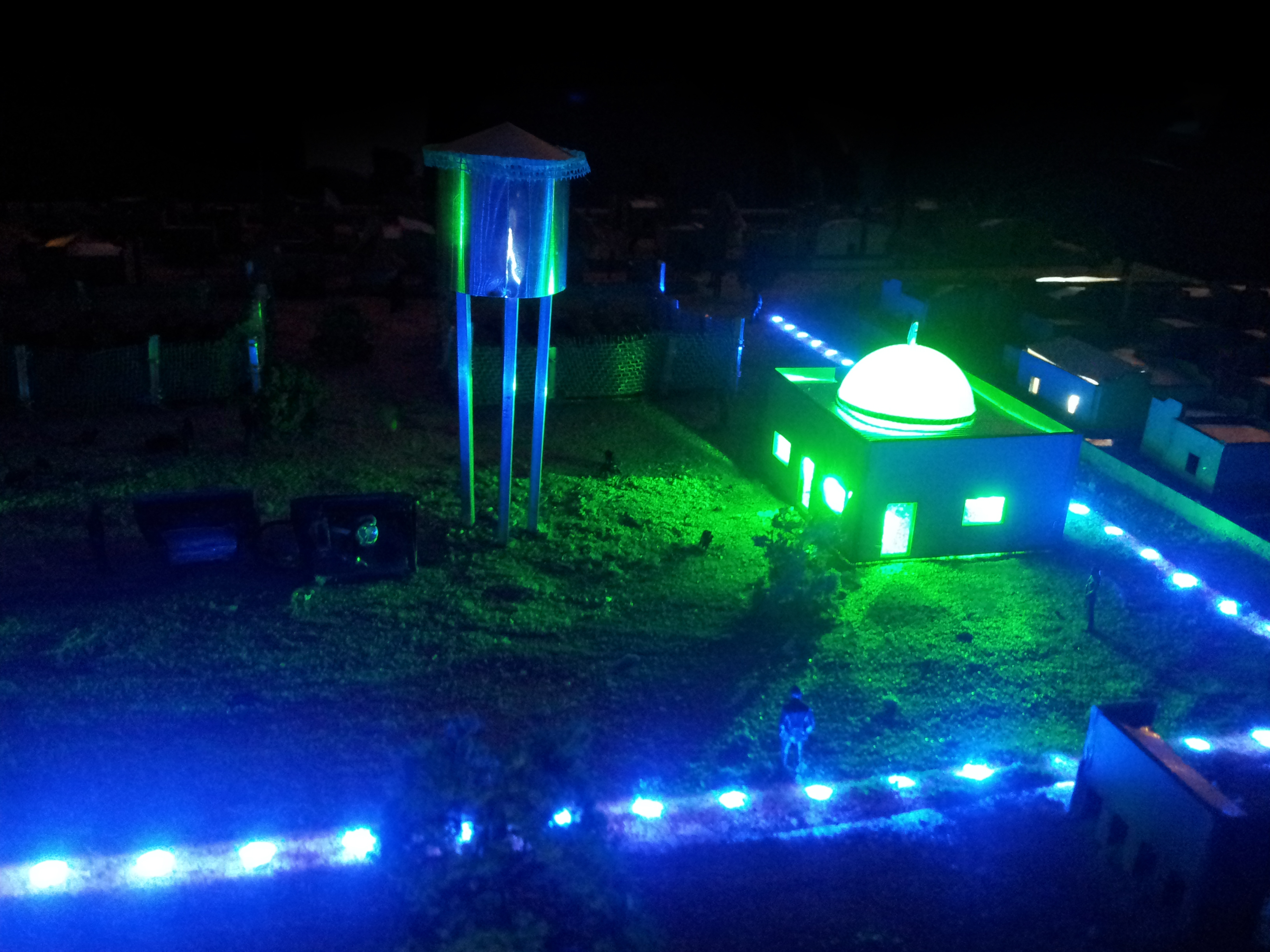 Blue lights were used to represent water access routes